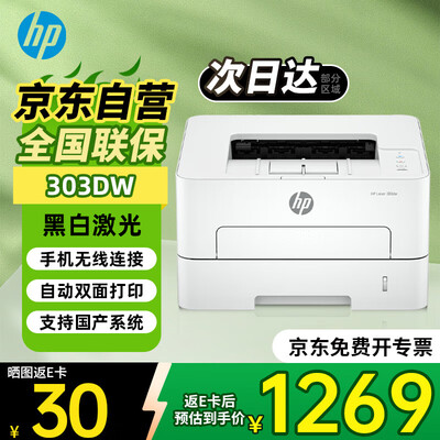 8687 惠普(HP)303dw打印机A4 黑白单功能激光打印机 小型商用办公学生家用打印机 自动双面打印 无线网络 QL008687 待询价 加入询价