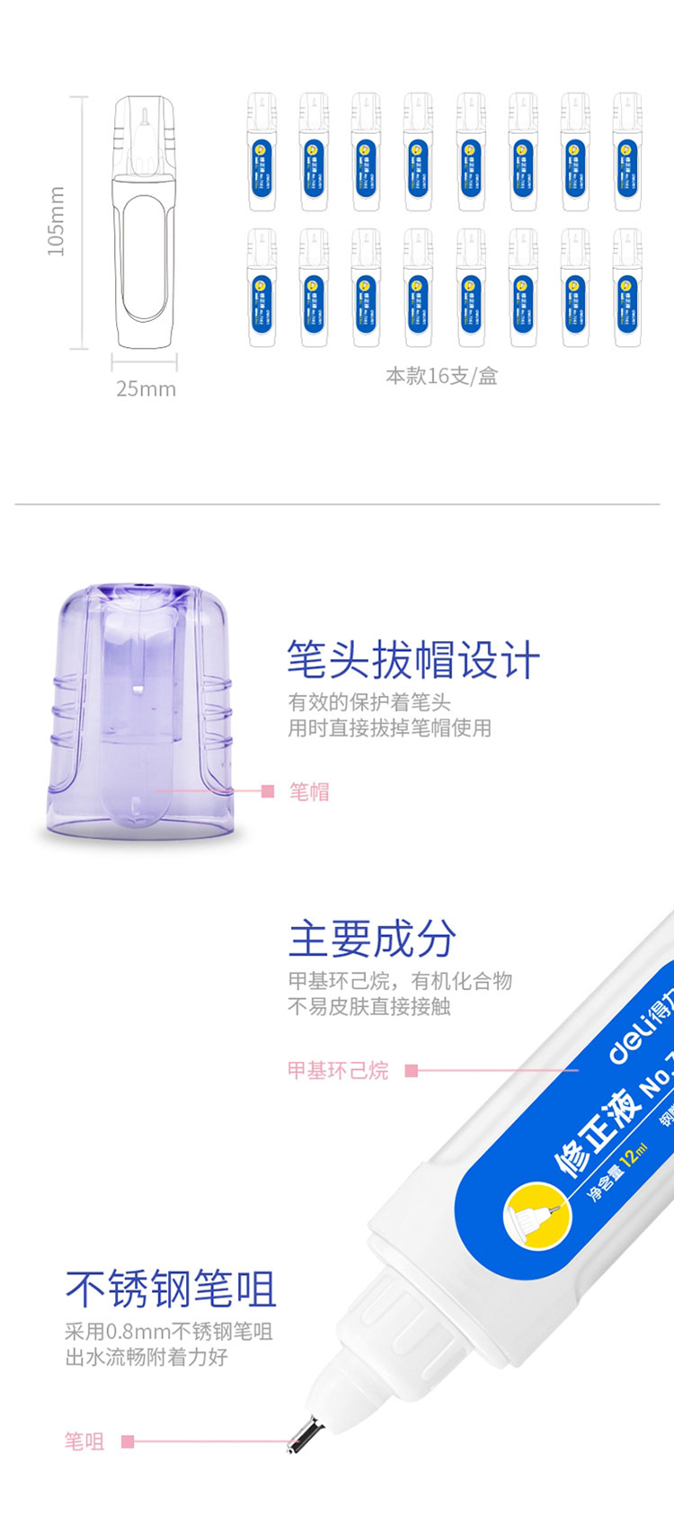 得力(deli) 7382(白)修正液