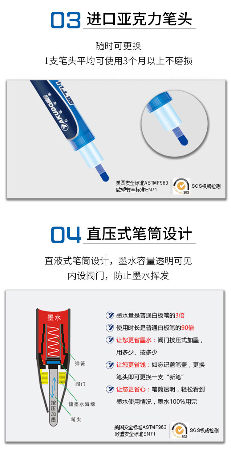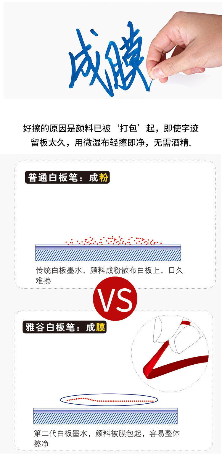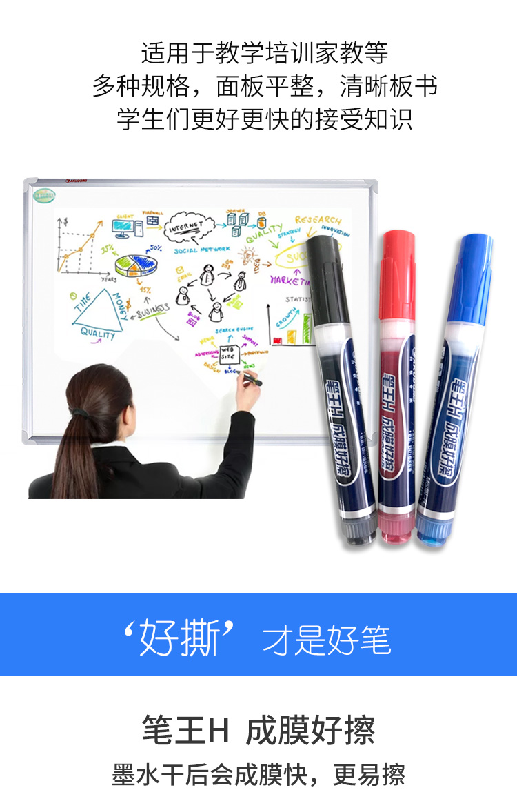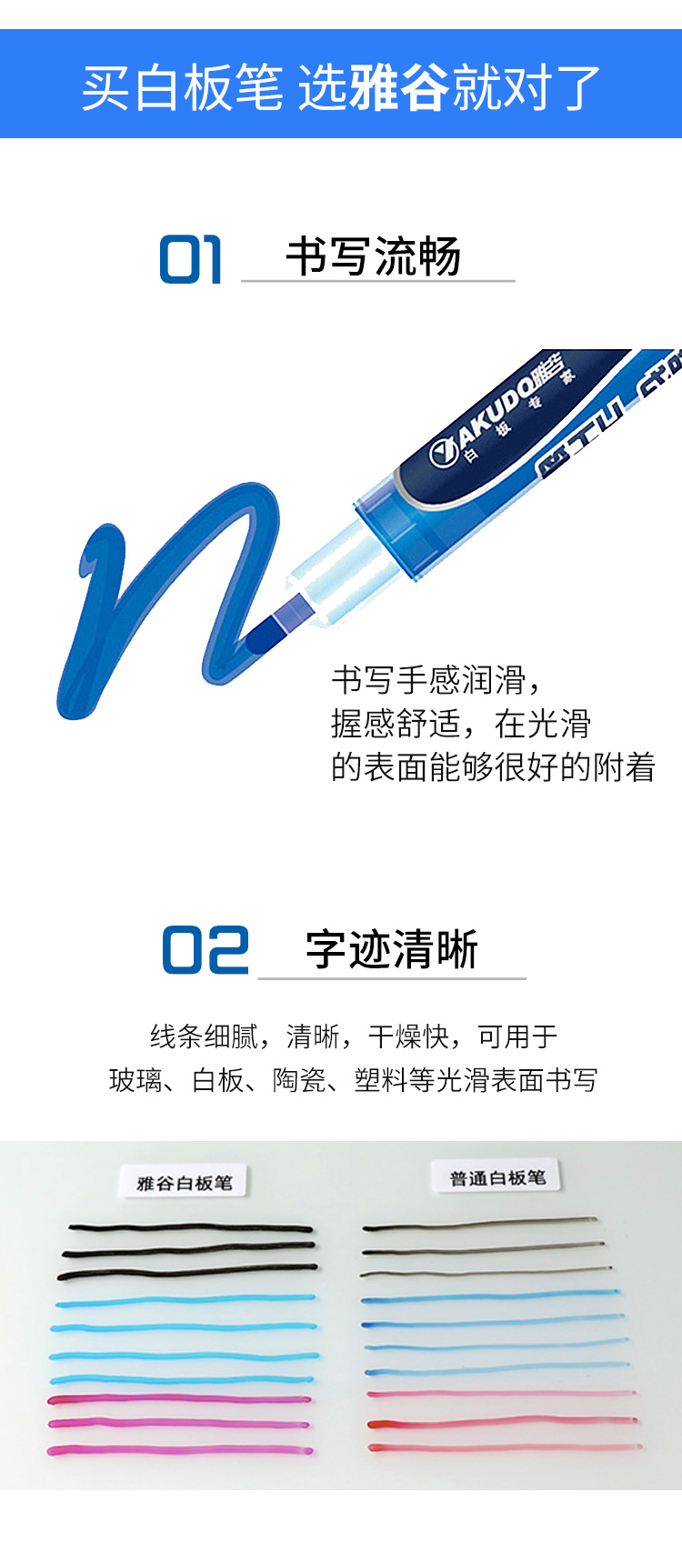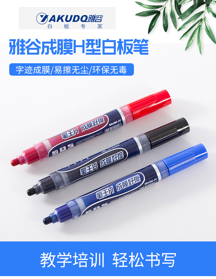 雅谷白板笔雅谷成膜H型白板笔可擦易擦 办公会议 可加墨 黑色单支可加墨