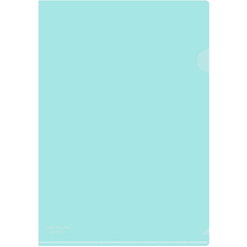 卓联彩色 L型夹透明文件袋单片夹A4文件套二页插页袋塑料办公用品资料夹 E310-18彩色单片夹 透明绿 30个装