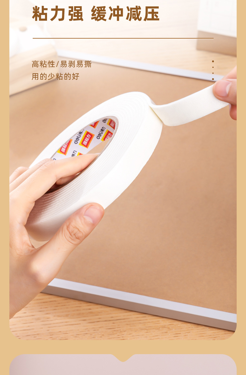 得力泡棉双面胶带18mm*5y*2.5mm/卷 30411