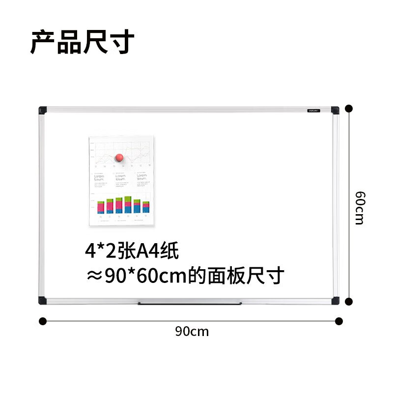 得力(deli) 悬挂磁性白板 易擦易写 办公会议白板 悬挂式写字板黑板 90*60cm 8791
