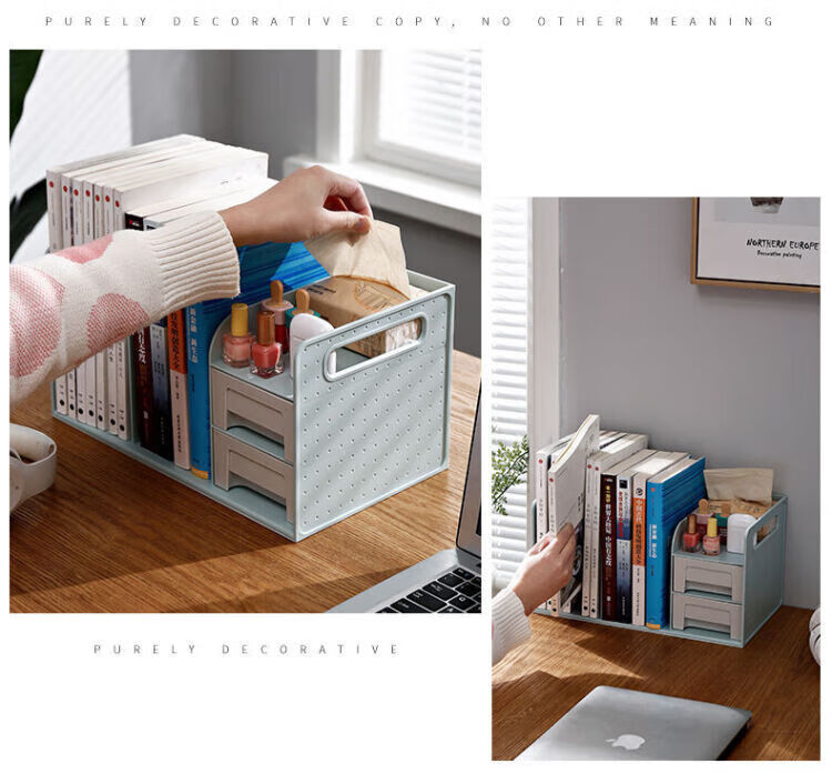 简易收纳架桌面抽屉式 天际蓝三层/一体笔筒