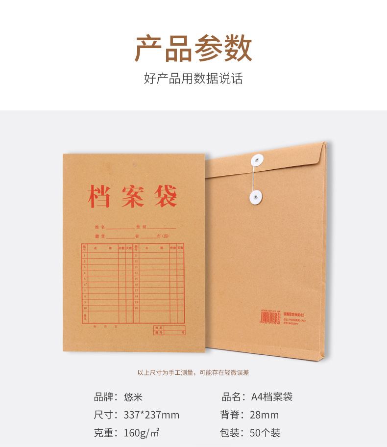 悠米(UMI)W08201Y牛皮纸档案袋27mm