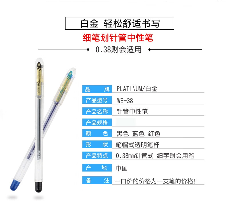白金(PLATINUM)WE-38 黑色 针管笔 0.38