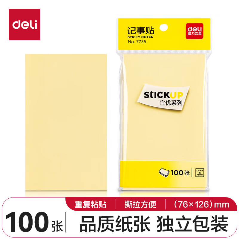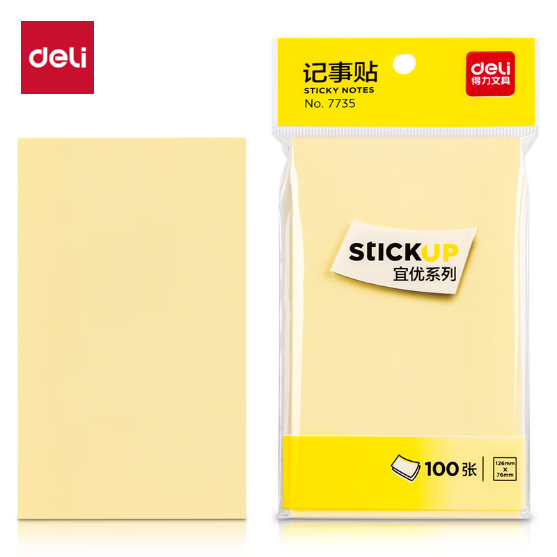 得力(deli)记事贴(淡黄)76*126mm(包)7735