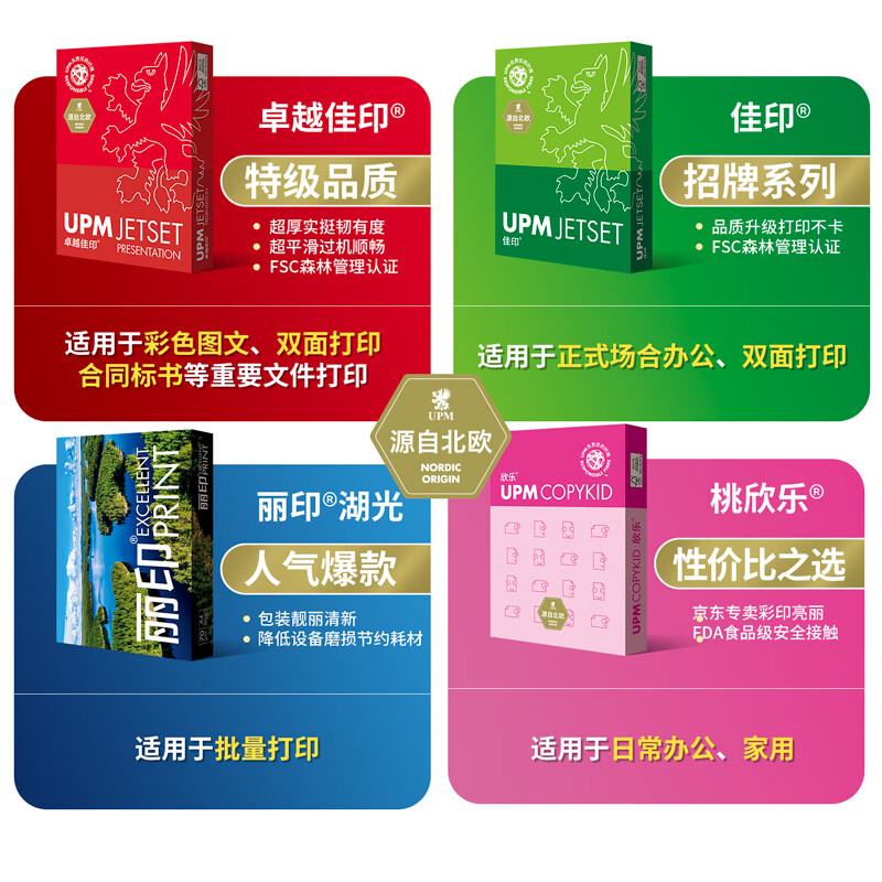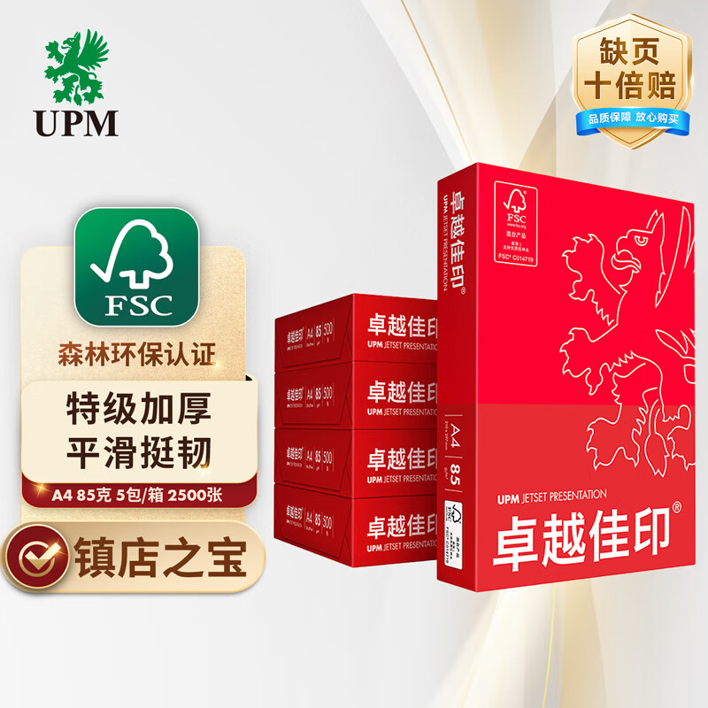 UPM卓越佳印 85克A4纸打印纸 500张*5包一箱 特级加厚复印纸 双面打印彩打纸 整箱2500张