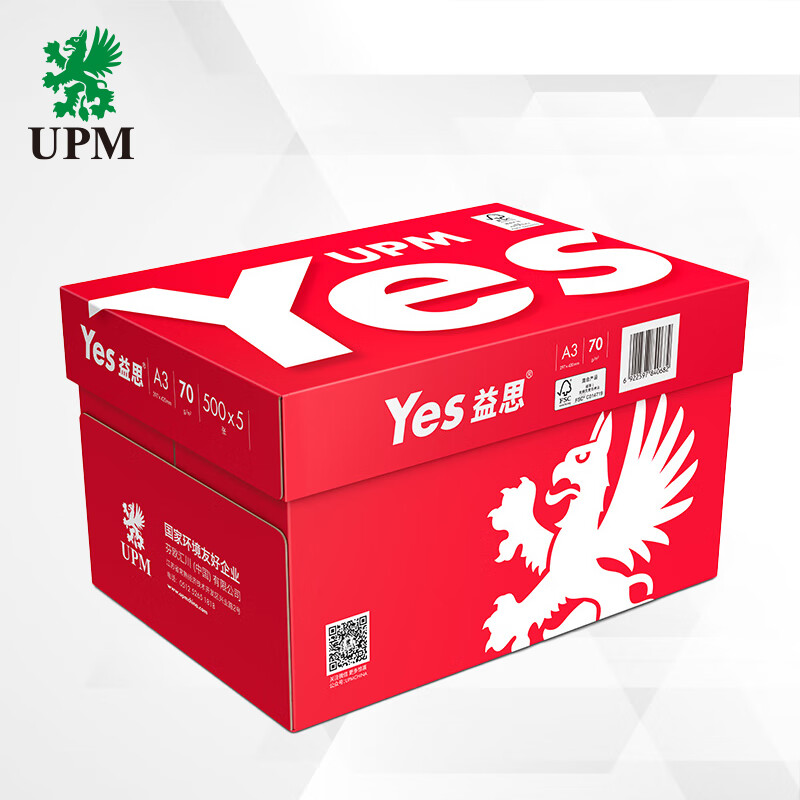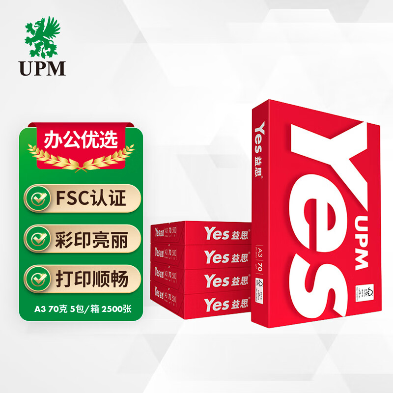 UPM红益思 70g A3打印纸 全木浆复印纸 500张/包 5包/箱(2500张)