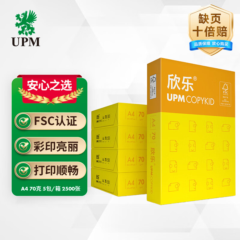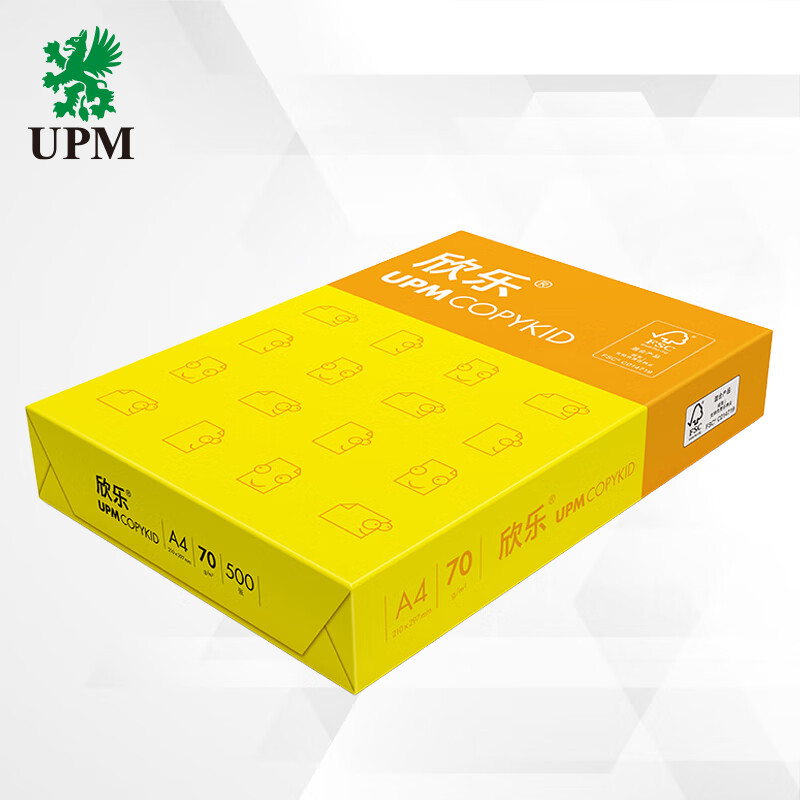 UPM黄欣乐 70g A4打印纸 全木浆复印纸 500张/包 5包/箱(2500张)