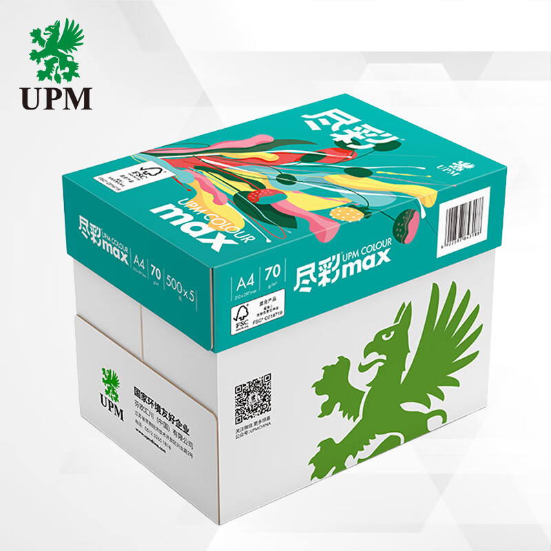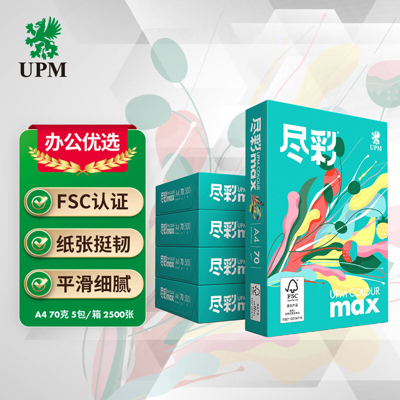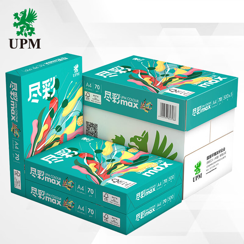 UPM尽彩 70g A4打印纸 复印纸 FSC认证 500张/包 5包/箱(2500张)