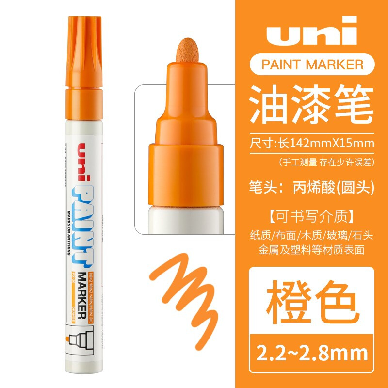 日本uni三菱彩色油漆笔PX-20粗2.2-2.8mm金色婚礼签名笔马克笔白色高光笔黑涂鸦记号笔 橙色