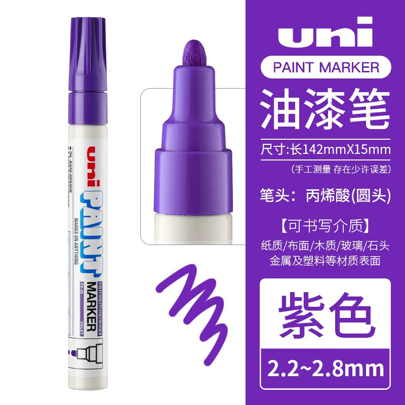 日本uni三菱彩色油漆笔PX-20粗2.2-2.8mm金色婚礼签名笔马克笔白色高光笔黑涂鸦记号笔 紫色