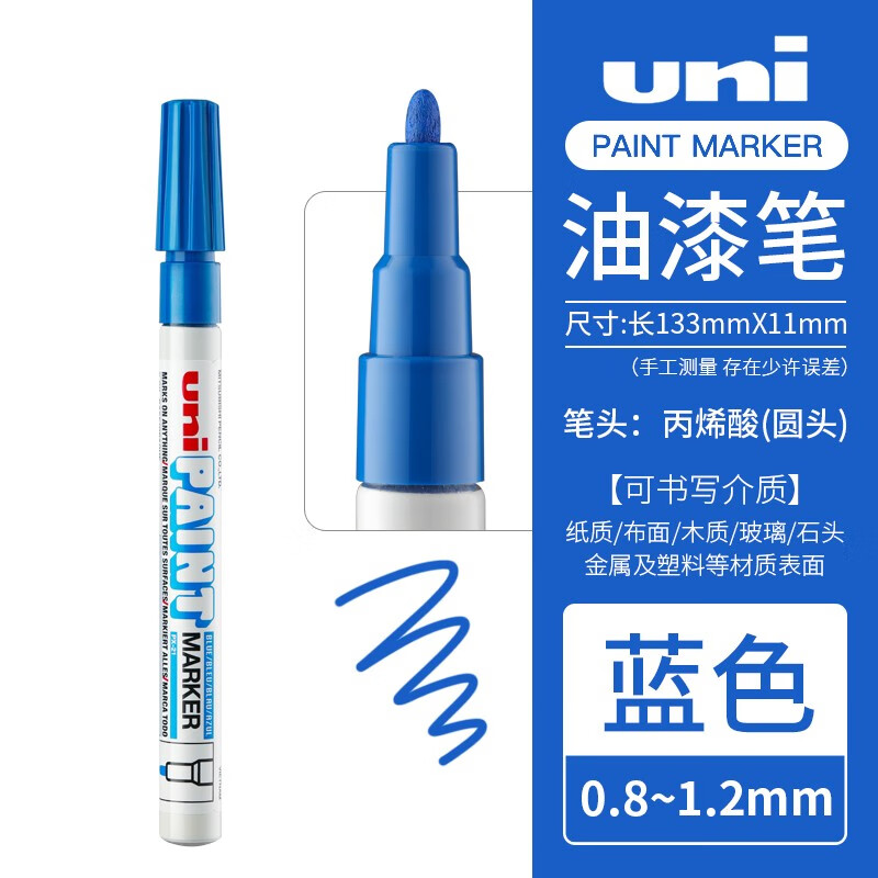 日本UNI三菱PX-21油漆笔0.8-1.2mm补漆婚礼签字笔记号笔中字金色油漆笔记号笔 蓝色
