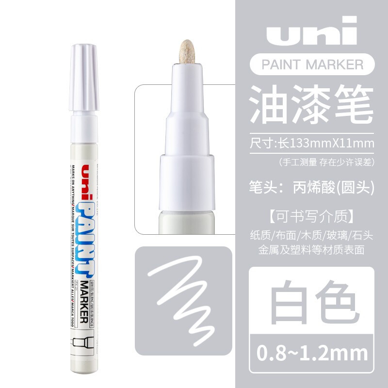 日本UNI三菱PX-21油漆笔0.8-1.2mm补漆婚礼签字笔记号笔中字金色油漆笔记号笔 白色