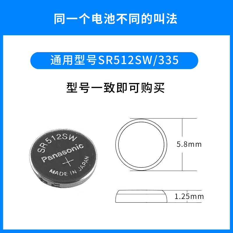 松下(Panasonic)SR512SW 氧化银手表电池 335 石英表纽扣1.55V 浪琴嘉岚 日本进口5粒装