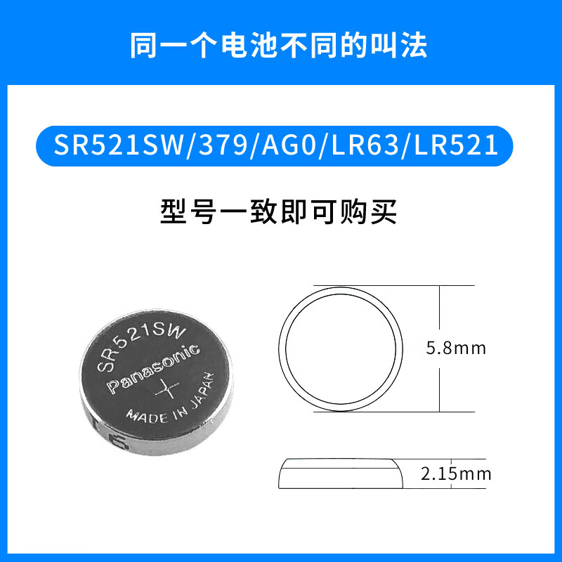 松下(Panasonic)SR521SW/379 手表电池氧化银进口纽扣电池1.55V适用于石英手表电子手表等 日本进口5粒装