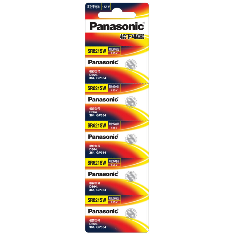 松下(Panasonic)SR621/364/AG1进口纽扣电池1.55V适用于石英手表天梭swatch浪琴SR621SW 五粒