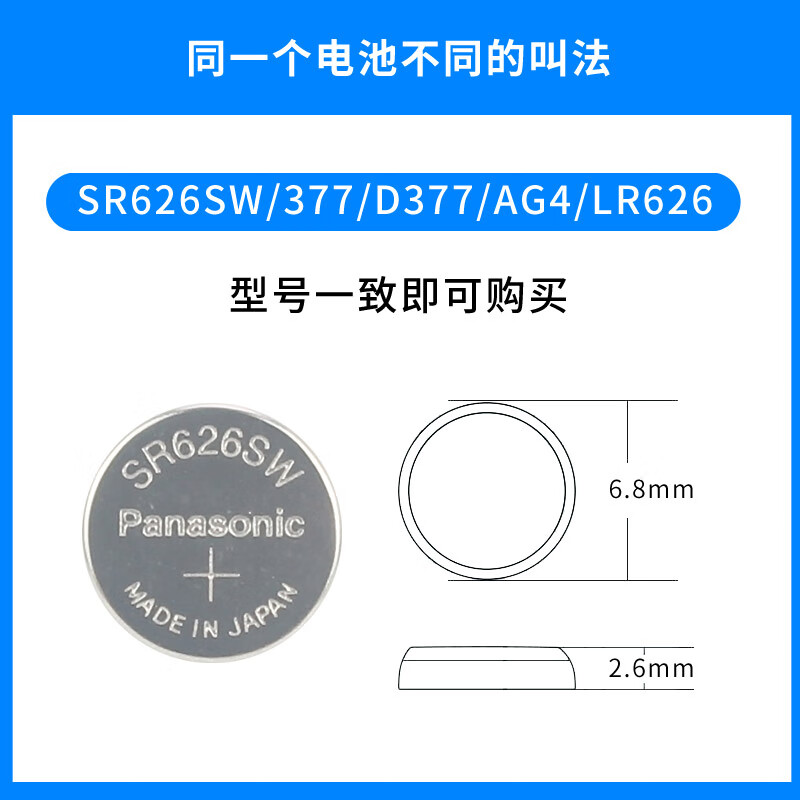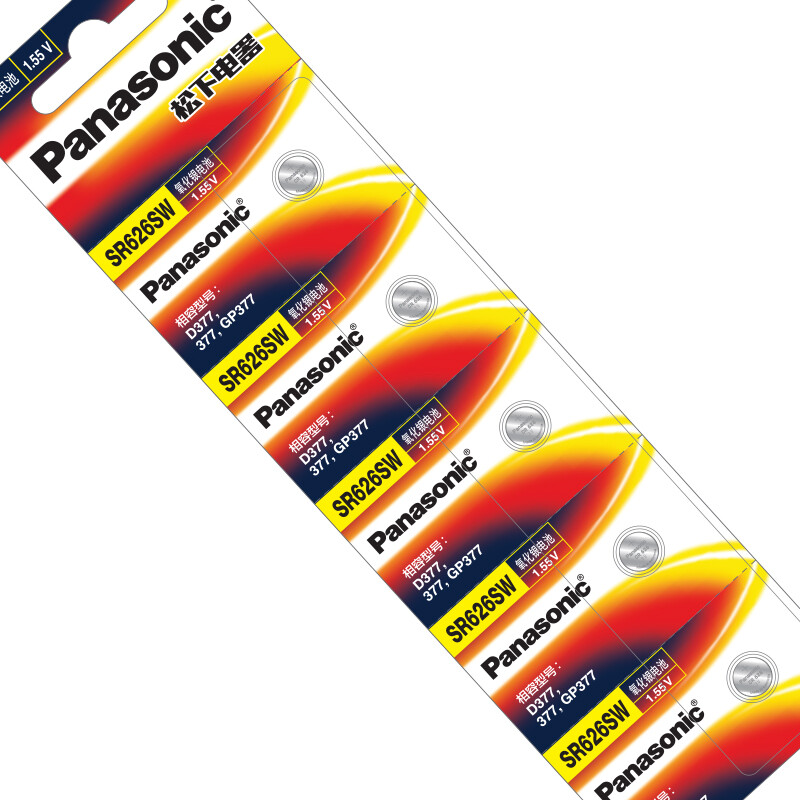 松下(Panasonic)SR626/377/AG4手表电池氧化银进口纽扣电池1.55V适用于石英手表电子手表等SR626SW 五粒