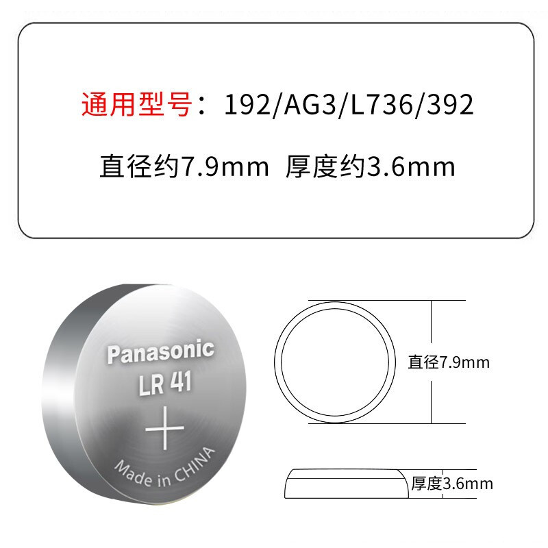 松下(Panasonic)LR41碱性纽扣电池10粒192/AG3/L736/392适用电子手表体温计计算器