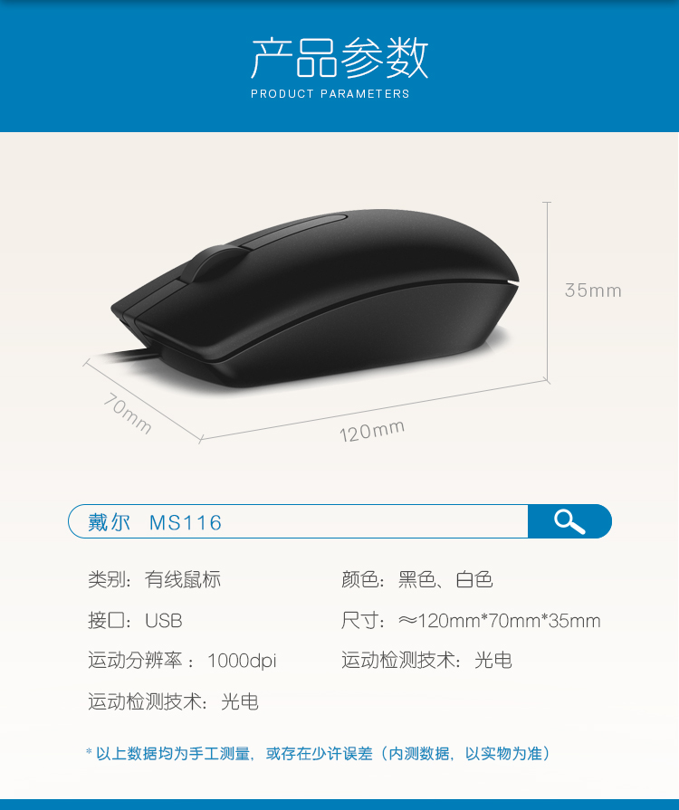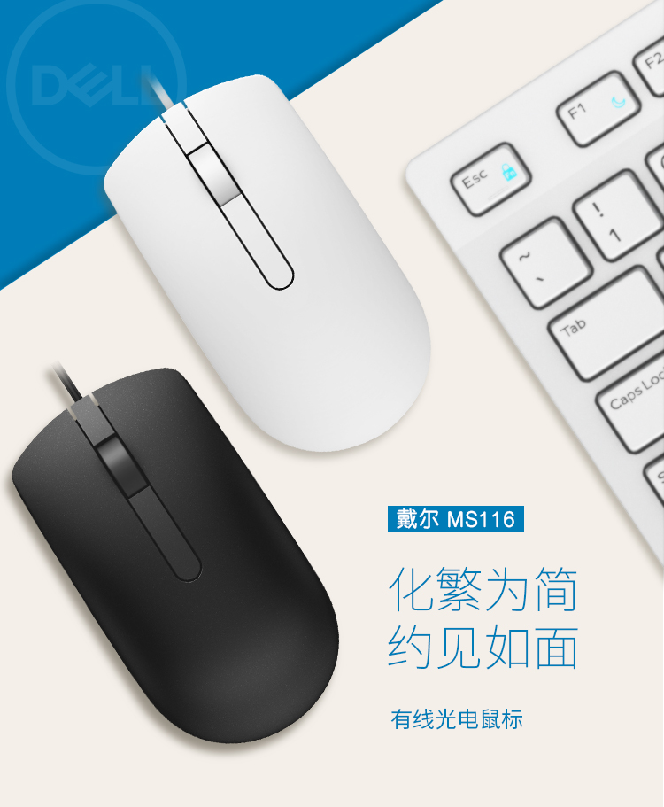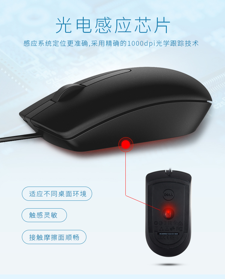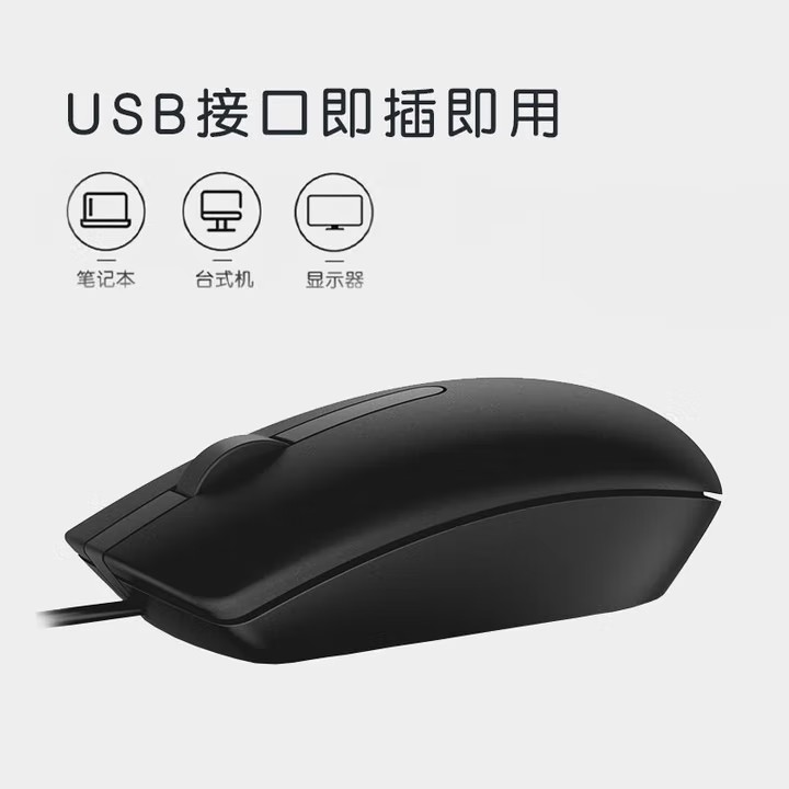 戴尔(DELL)MS116 有线鼠标 商务办公鼠标(黑色)