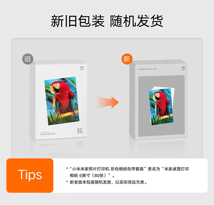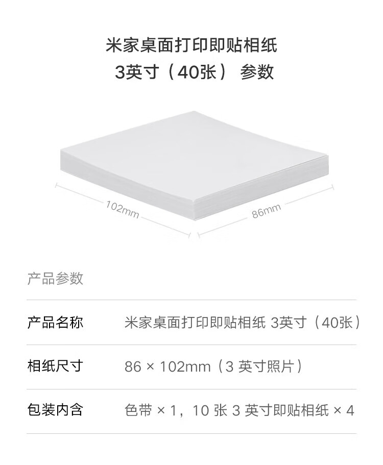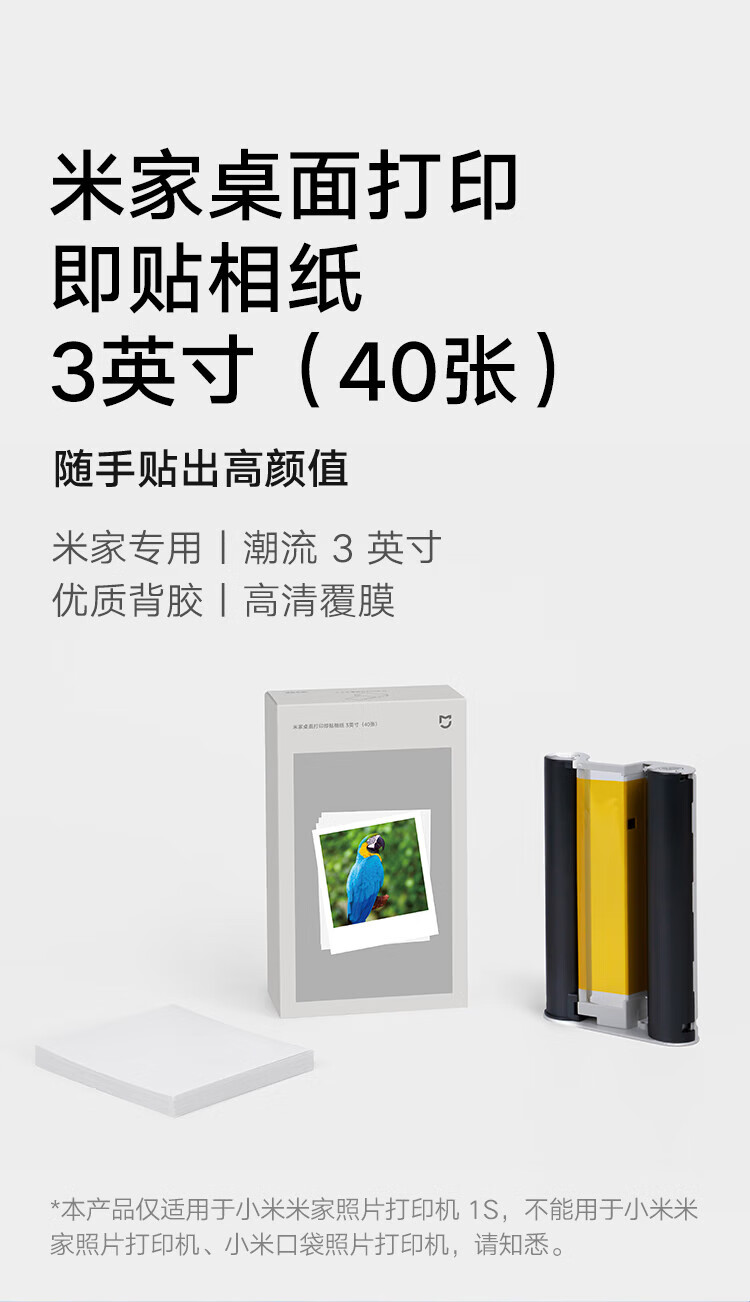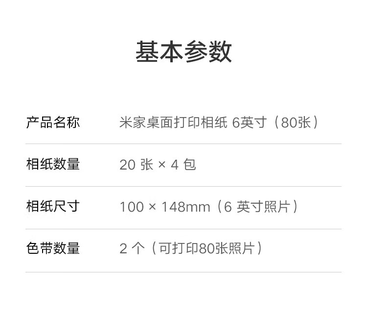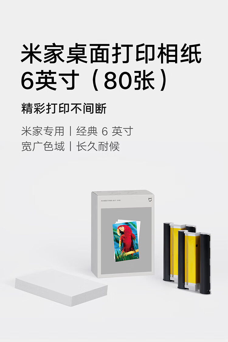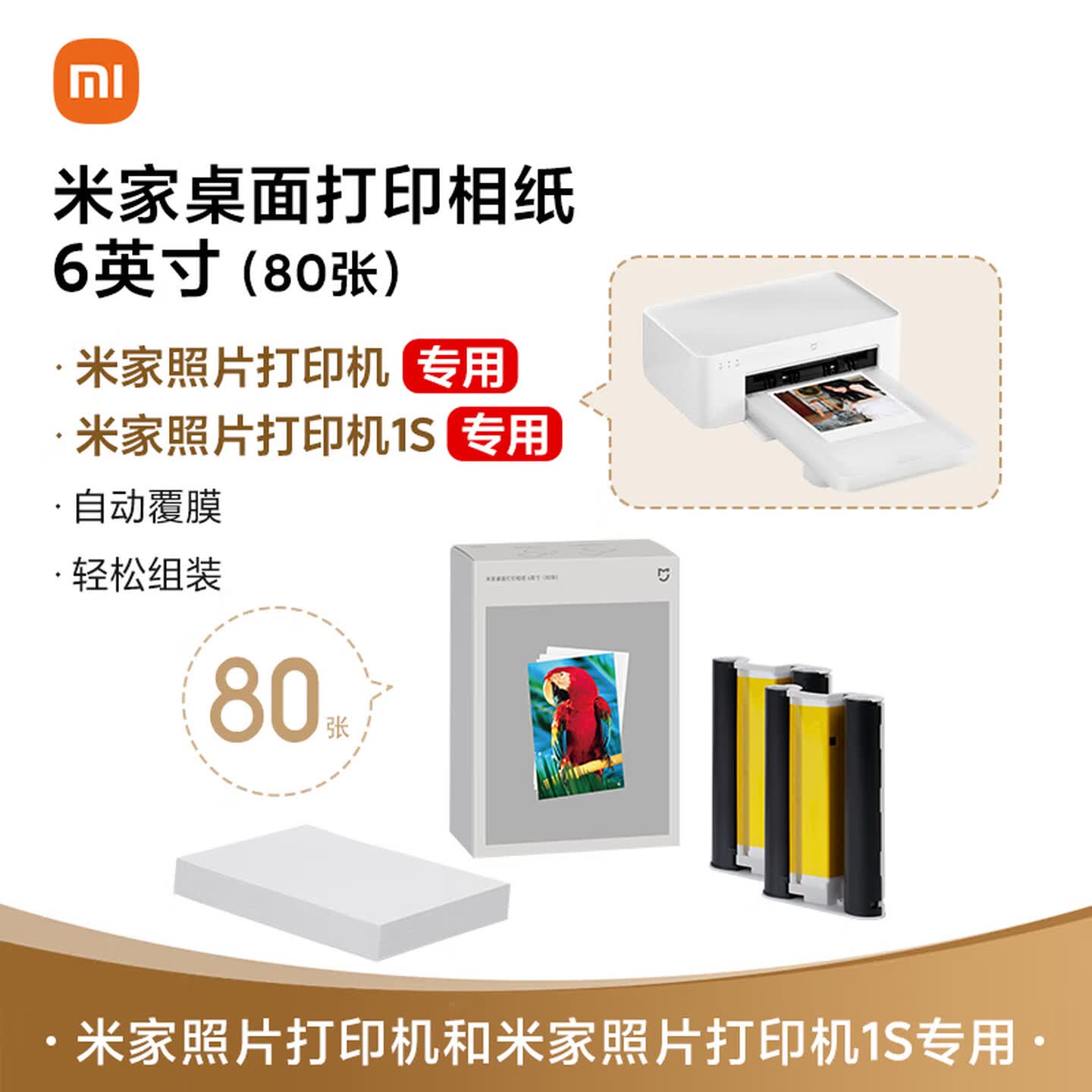 小米米家桌面打印机相纸6英寸(80张)适配于小米米家照片打印机1S